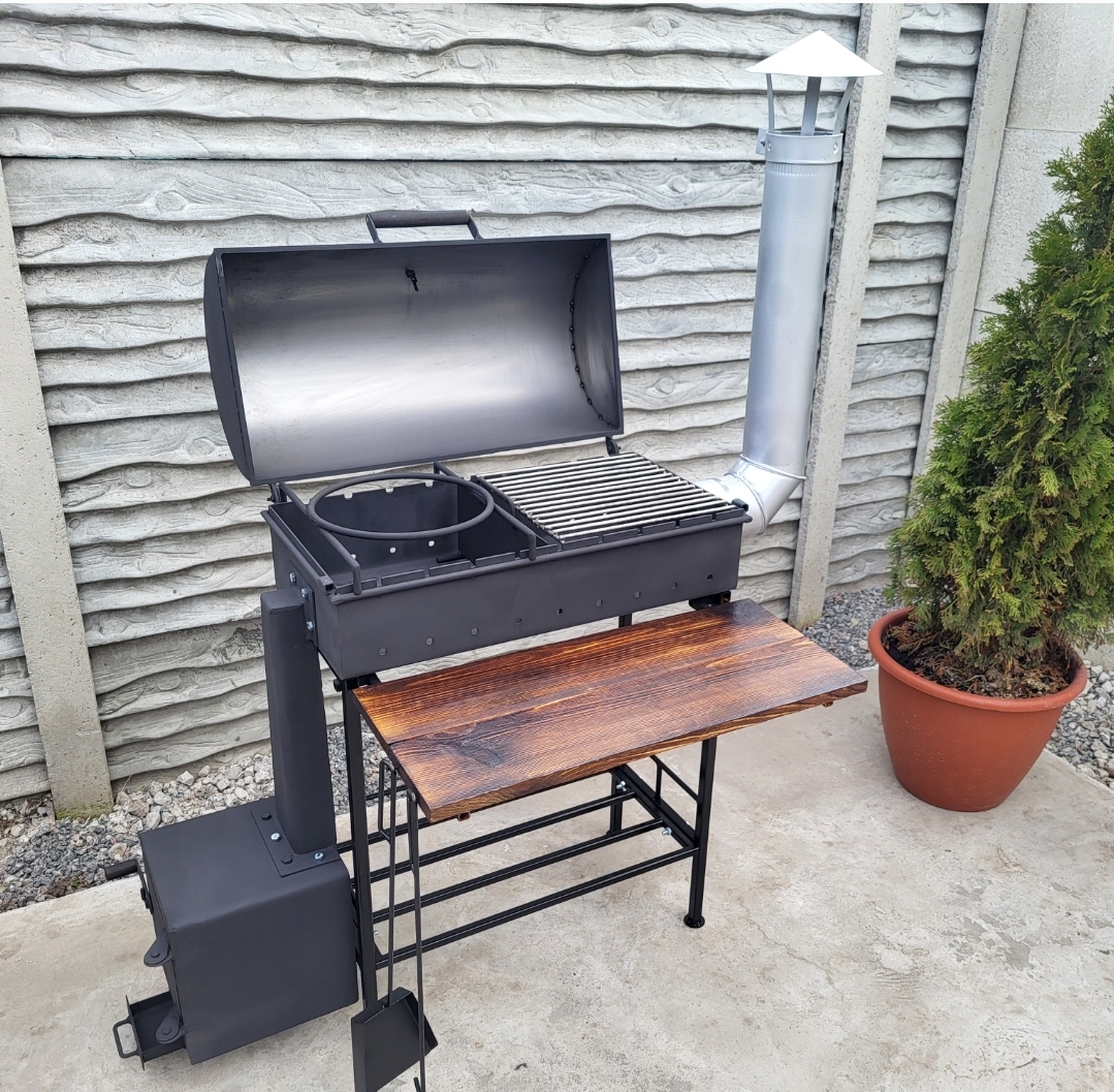 Як влаштовані конструкції для приготування шашлику та копчення? Вони можуть мати різну будову та виконання, виготовлятись із цегли, металу або їх поєднання. Майстри виготовляють на замовлення також пічки з натурального каменю із вбудованим металевим мангалом. Суто металеві конструкції можуть бути як стаціонарними, так і пересувними, тоді як моделі з каменю або цеглини – тільки стаціонарними. Найпростіший варіант металевого мангалу для гарячого копчення має вигляд ящика з листів сталі, з кришкою і розміщеного на решітку, що монтується на мангал (теж сталевий) і закриває вугілля. Така конструкція може бути розбірною; її можна перевозити з собою в автомобілі в походи або брати на рибалку для копчення свіжовиловленої риби. Вона спроектована саме під гарячий спосіб копчення: йому потрібен високотемпературний дим (60-80 град.), отже коптильна секція розміщується над паливною камерою (чи поруч із нею). Є й інший варіант конструкції - дві послідовно розташованих секції, забезпечені кришками і трубою, що з'єднуються, невеликий довжини. Одна з секцій служить камерою топки, друга (великих розмірів) - коптильня: в неї йде дим з топки. У відкритому вигляді (без кришки) великий блок може бути використаний як мангал, а в закритому - гриль. Якщо додати до них третій блок (вертикальний, з гачками та сітчастими частинами), конструкція підійде не тільки для гарячого копчення, але й холодного. Для нього потрібна нижча температура (близько 40 градусів). Камера топки в такій складній конструкції може бути забезпечена нішою для казана або варильною поверхнею. Це дозволить розширити асортимент страв, що готуються просто неба. В обох випадках конфігурація може укомплектовуватися додатковими пристроями, що роблять роботу кухаря комфортнішою та розширюють його можливості. Це може бути навіс від дощу, зольник для зручного очищення конструкції, відсік або полиця для дров, стільниця для нарізки та оброблення, різні полички, термометр (наприклад, вмонтований у кришку).
