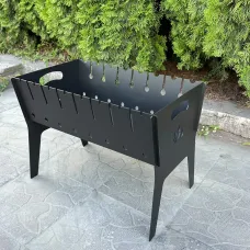 Як улаштований переносний мангал? Його виготовляють із металевих листів. Існують різні типи конструкцій; один із прикладів - розбірна. Це комплект листів металу потрібних габаритів з пазами, місцями для кріплення та ніжками з металопрофілю. У розібраному вигляді конструкція займає дуже мало місця, а вона збирається за лічені хвилини. Ці особливості дозволяють брати її з собою у поїздки, пікніки та подорожі. Найчастіше стики вже спроектовані виробником так, що для складання мангалу на місці не потрібні додаткові кріплення. Ще один різновид – доладний мангал у формі валізи. Він схожий на кейс із тонких металевих листів; у такому вигляді його і належить перевозити із собою у походах. Завдяки наявності фіксуючих деталей конструкція виходить досить твердою. Прибувши на місце, мангал можна розкласти в конфігурацію, придатну для приготування їжі (металевий ящик на коротких ніжках). Практичним варіантом буде складний мангал 3мм зі сталі (3 мм - товщина сталевих листів). Мангал у вигляді ящика з ручкою та товстими міцними ніжками відрізняється надійністю та довговічністю. Ніжки під час розбирання легко демонтувати, що робить конструкцію зручною для транспортування. Після розбирання пакет комплектуючих виходить не настільки мініатюрним, як у складних моделей, але все ж таки цілком компактним і зручним для перевезення. Як паливо для таких мангалів слід брати деревне вугілля, а не дрова. Це з тонкістю стін таких конструкцій. Щоб не допустити їхньої деформації від потужної спеки, вугілля слід готувати не в самому мангалі, а окремо (наприклад, на багатті).