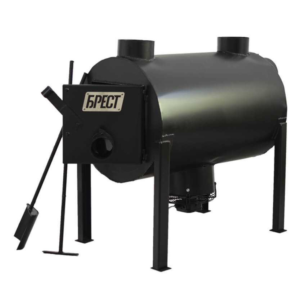 У булер'яні Брест 350 плюс із вентилятором реалізовано принцип примусової конвекції. Для цього на піч вже встановлений вентилятор нагнітаючий осьового типу з потужністю всього 59 Вт. Незважаючи на невеликі габарити вентилятора, його продуктивність 619 м3/год. Такі характеристики дозволяють рівномірно прогріти приміщення об'ємом до 350 м3 за годину.