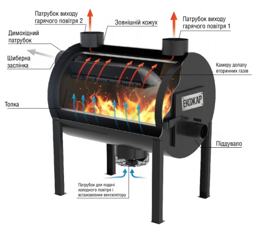 Піч має камеру допалу вторинних газів: