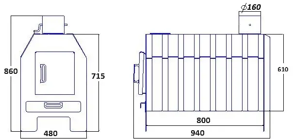 * Габаритні розміри печі можуть бути трохи змінені виробником без попереднього попередження.
