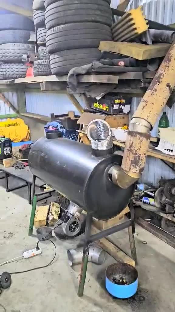 Відео відгук від клієнта, який встановлював меншу піч Poltavka Turbo 200 (з топкою Д50хШ42) на обігрів столярної майстерні: