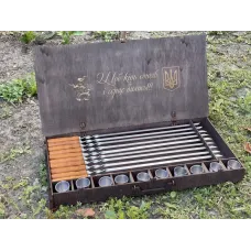 Ви можете купити у нашому інтернет-магазині різні подарункові набори для чоловіків. У нас є шашличні набори, в яких повз шампури входять в комплект ще - грати гриль, вилка для зняття м'яса, фляга зі стосами, а також можуть входити в сокирку, або ніж-тесак та інші потрібні на природі аксесуари.